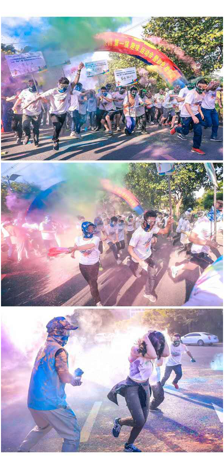 四項比賽項目結束后,趣味競賽也告一段落,接下來進行的則是令人期待的彩色歡樂跑。跑步是一項最基礎的運動,能夠增強體質和耐力,是最健康有效的鍛煉方式。而本次彩色歡樂跑,則是在彩粉中,圍繞科技園園區(qū)進行的長達三公里的跑步比賽。在大家戴上防目鏡和頭巾之后,隨著彩粉的拋撒,比賽正式開始。而健侖生物當中,一馬當先的是公司領導詹總,他揮舞著旗桿,領跑在大隊伍的前方,也象征著健侖生物要在國內做最出色的生物公司,做領跑同行的領頭羊!而各位同事也不甘落后,卯足了勁沖刺在賽道上。團結,友愛,互助,拼搏,高效,追求完美的公司文化在本次比賽中展現(xiàn)的淋漓盡致。